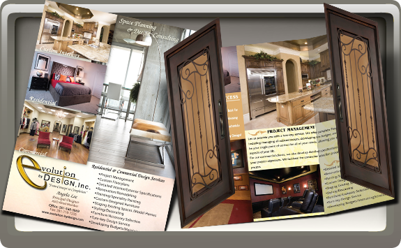 Curtis Consulting supported Evolution by Design with marketing collateral and a website concept to elevate brand presentation and help convert prospective clients for interior design services, a furniture warehouse, and showroom.